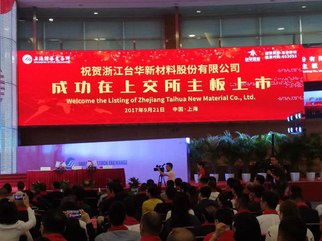 熱烈祝賀公司客戶(hù)浙江臺(tái)華新材料股份有限公司于2017年9月21日在上海證券交易所主板上市,股票簡(jiǎn)稱(chēng):臺(tái)華新材,股票代碼:603055。公司董事長(zhǎng)劉迪女士受邀參加了上市儀式。